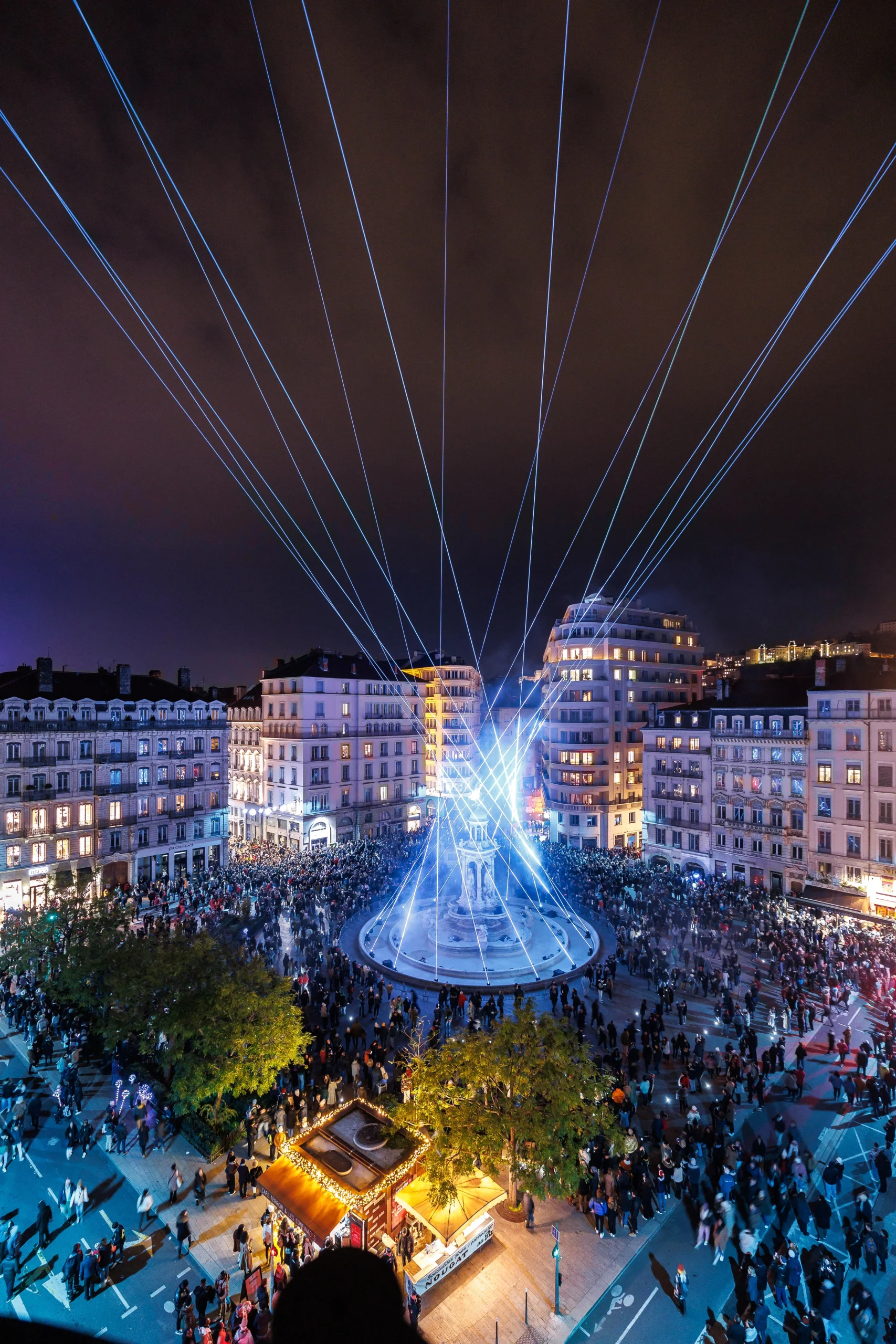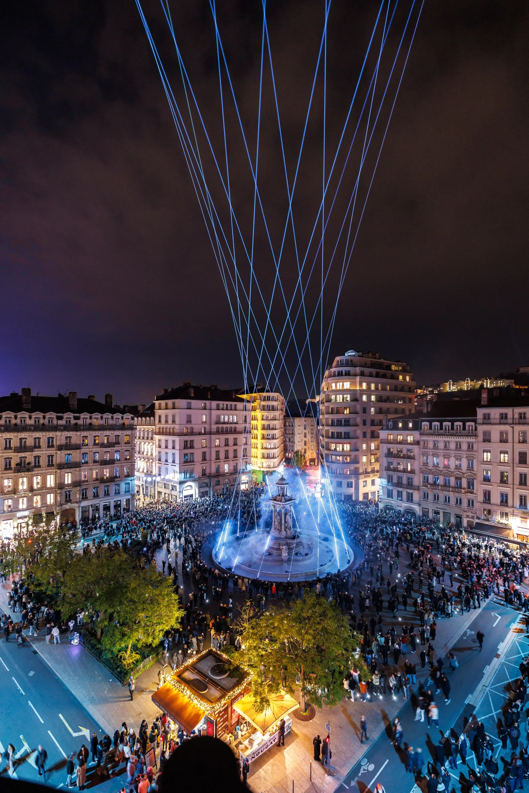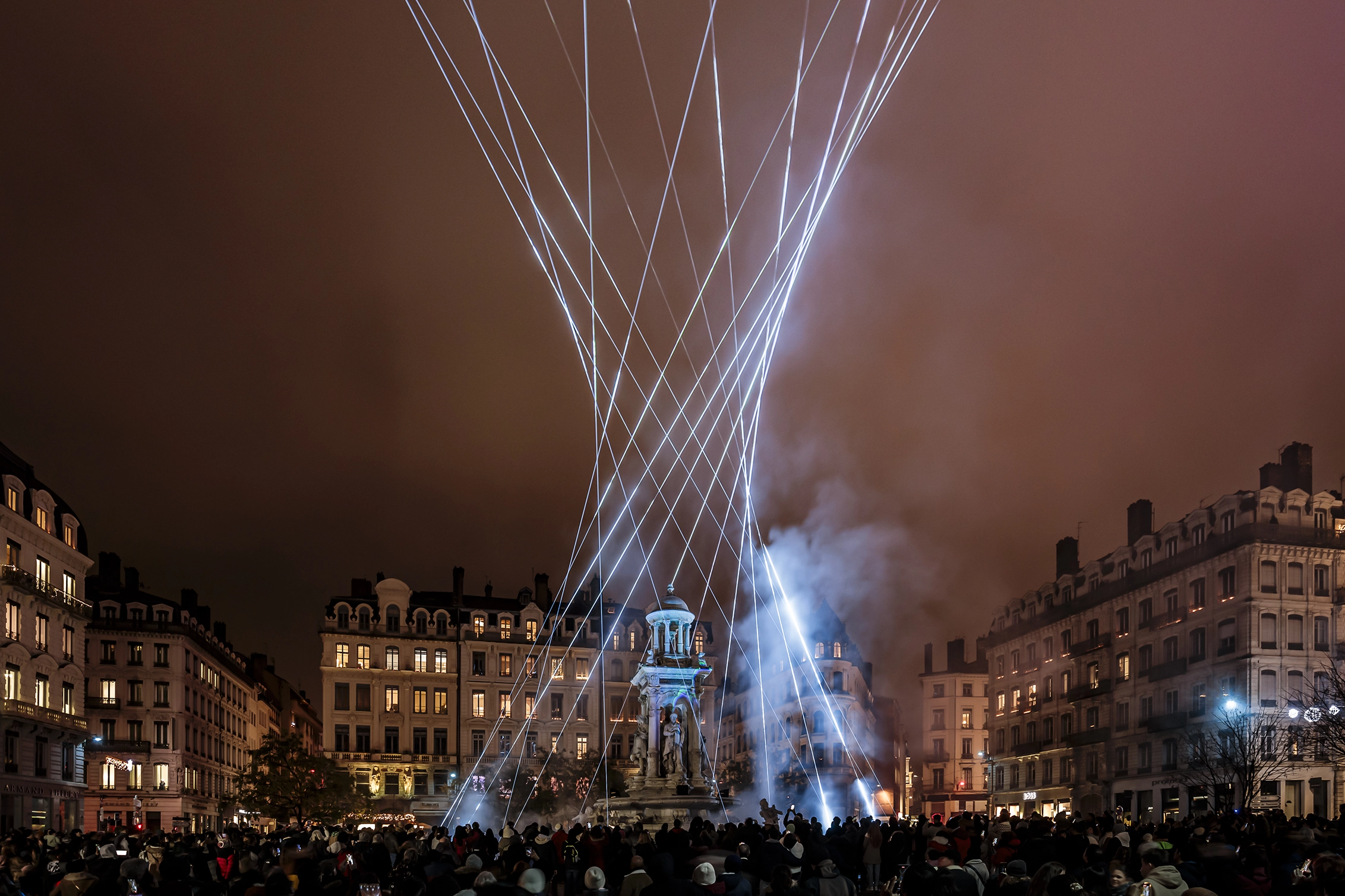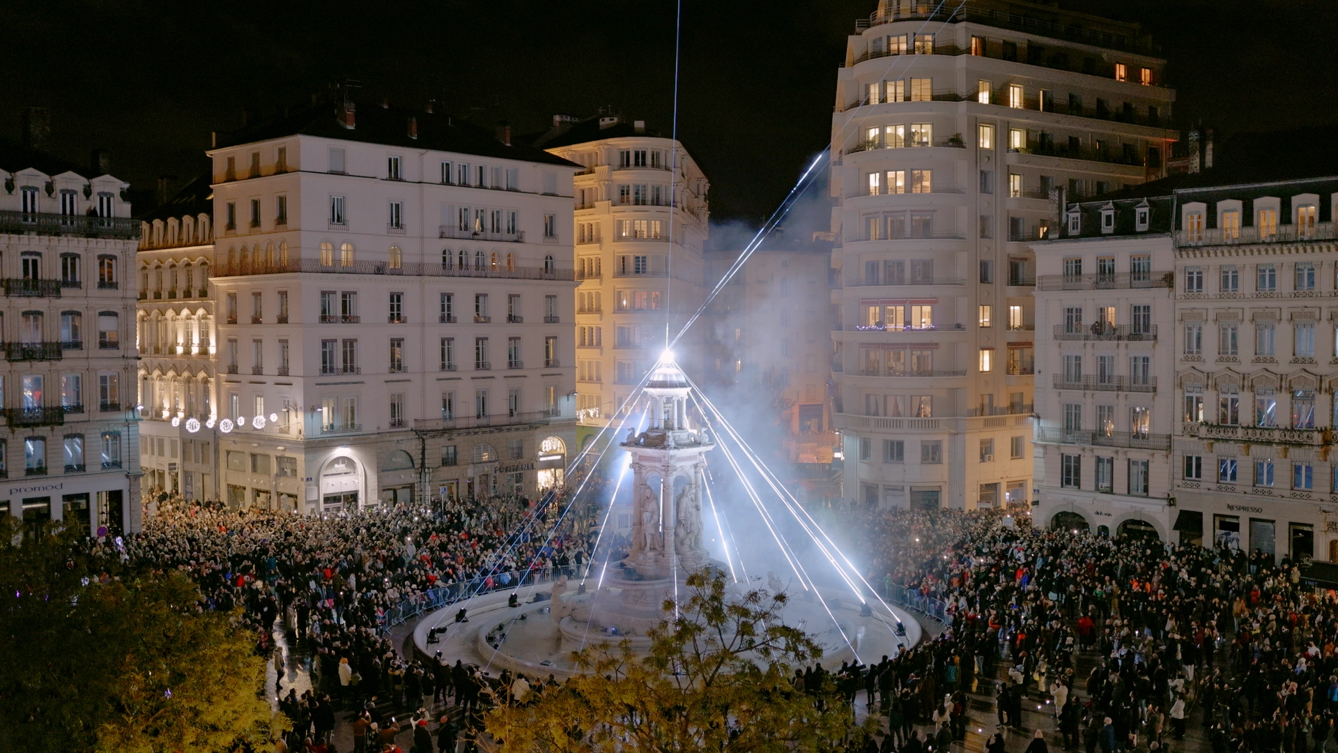 Écrin est une installation laser monumentale commandée pour la Fête des Lumières de Lyon. Conçue spécialement pour la fontaine historique des Jacobins, cette installation transforme ce monument néoclassique en une pièce maîtresse rayonnante, tant sur le plan architectural que symbolique.