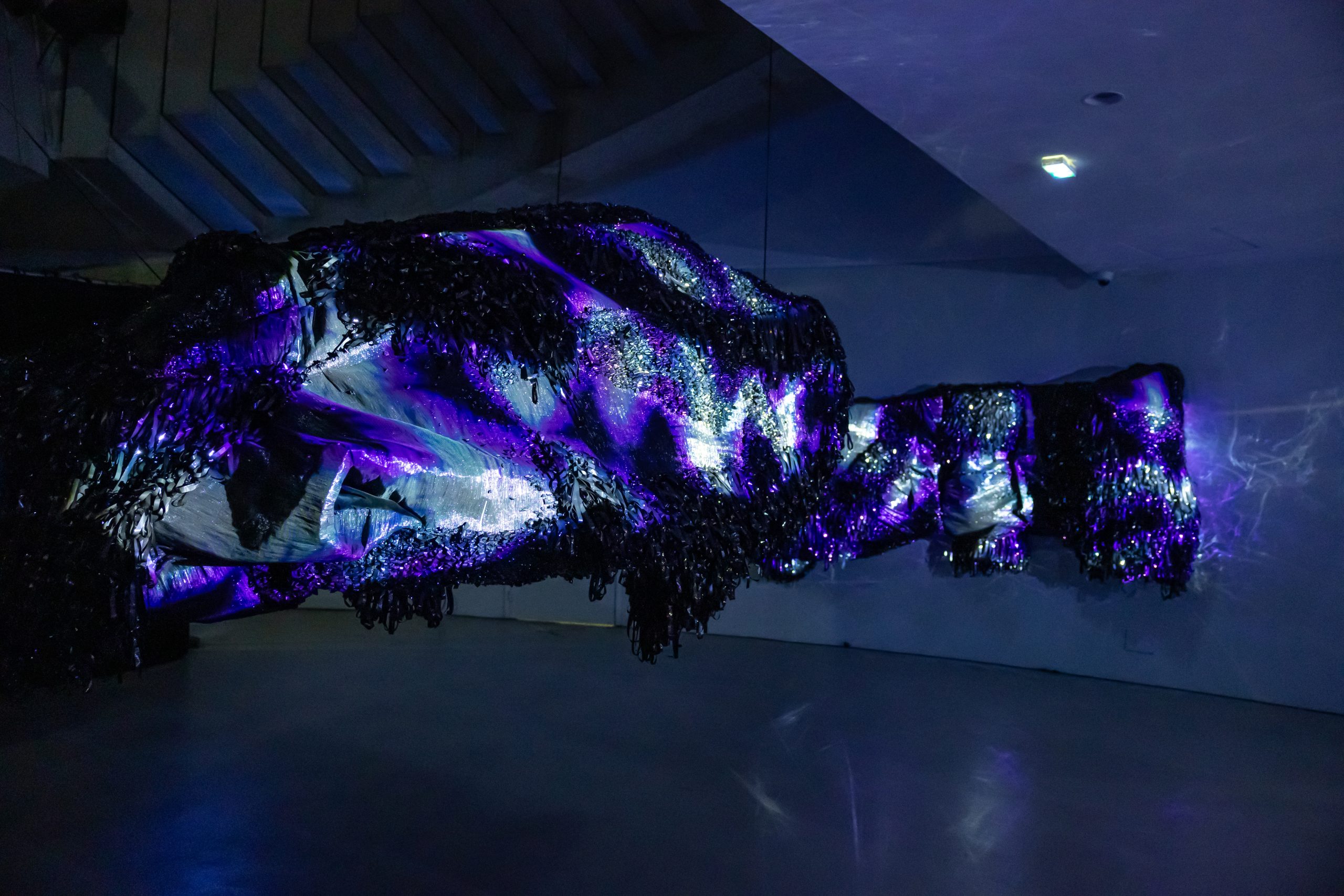 Nawelle Aïnèche s’est d’abord formée au costume de scène. Son travail, dominé par le tissage, est centré sur le corps, ses traumatismes et ses mécanismes. Lors de résidences, aux Ateliers Médicis notamment, elle poursuit sa recherche entre mouvement, matière et sculpture. Elle développe plusieurs projets transdisciplinaires autour du tissage de bandes magnétiques de cassettes vidéo, qui mélangent installation et performance. Ses créations ont été exposées en France et à l’étranger.